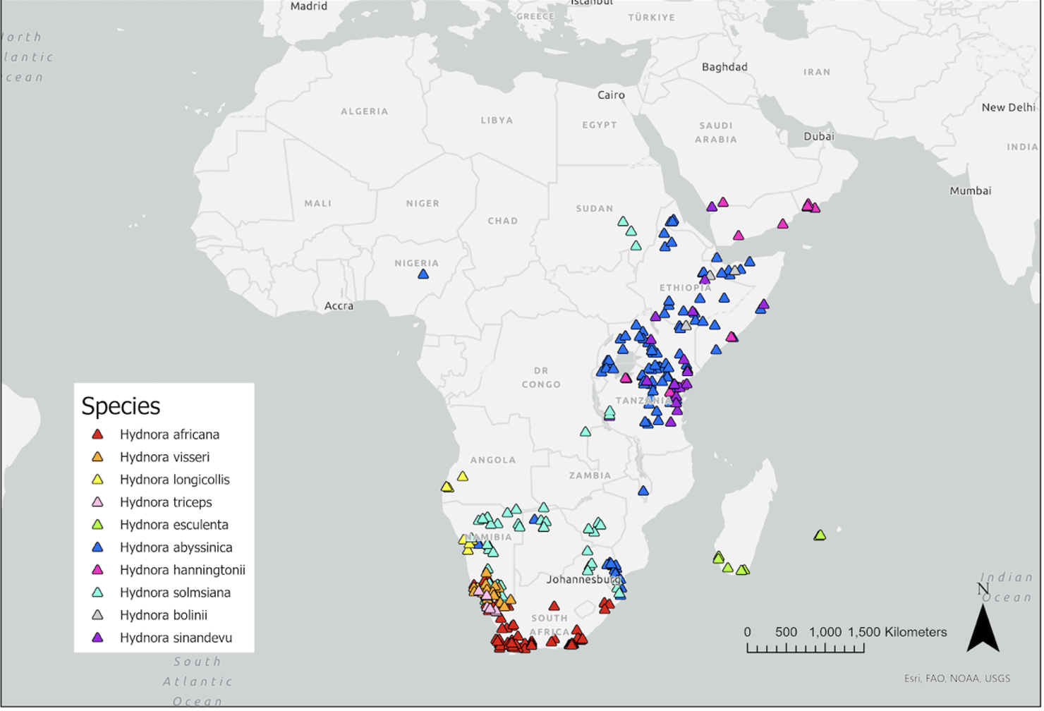 Fig. 2: A map of the known distribution of Hydnora species